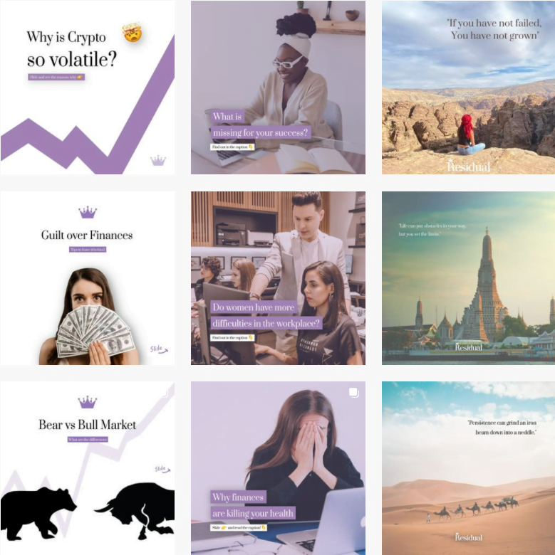 Explore our Instagram feed.. It is rich with Financial Education, Self love, Travel, Adventure, and Empowerment.
